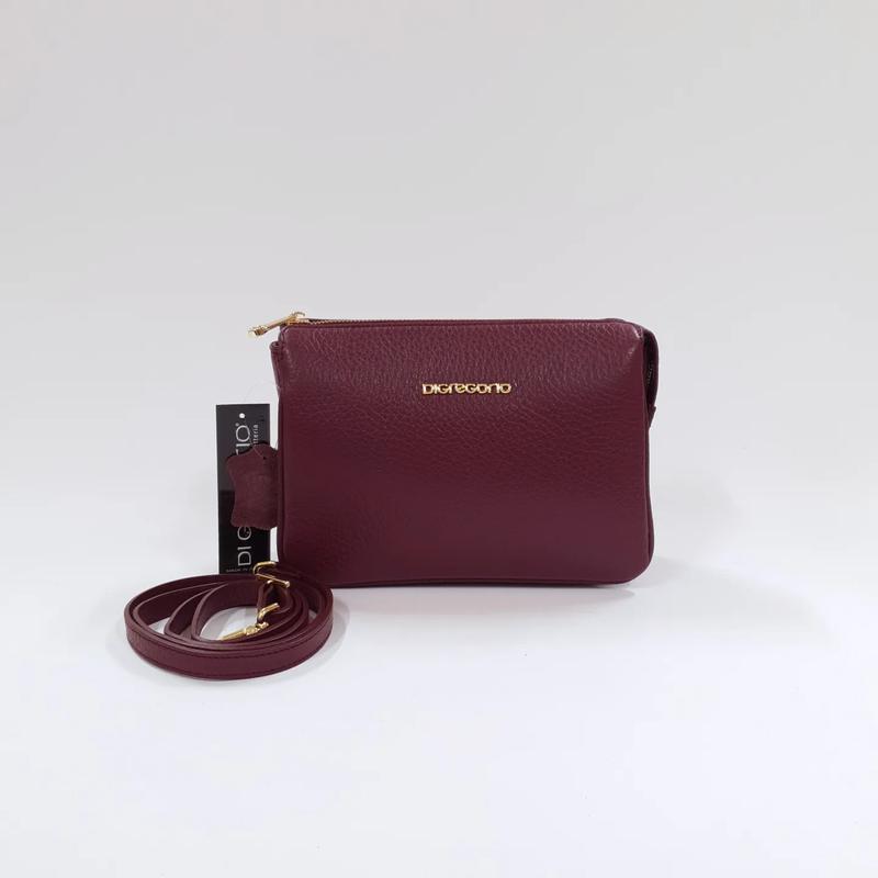 Арт.796 Колір-бордо Плечова сумка Di Gregorio (Ді Грегоріо) виготовлена з натуральної шкіри крупнозернистої фактури напівжорсткої форми із золотою фурнітурою. Закривається на блискавку. Усередині три незалежні відділення з великою кишенею на блискавці. Плечовий ремінь знімний та регульований. Сумочка гасає на плечі або через плече. Розміри сумки: Довжина по дну - 24 см Ширина по дну - 9 см Ширина по верхньому краю - 7 см Висота по центру - 17 см Максимальна висота з плечовим ременем - 77 см Максимальна довжина плечового ременя - 135 см