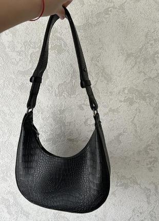 Сумка чорного кольору в принт рептилії) Дуже гарно тримає форму, ручка регулюється, можна одягати через плече) стан дуже гарний) Сумка дуже вмістка)