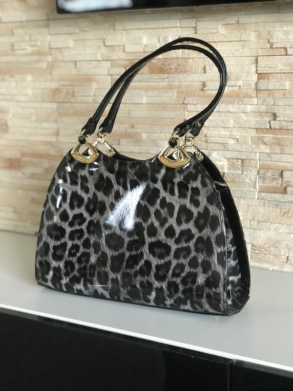 Лакова сумка у трендовому принті