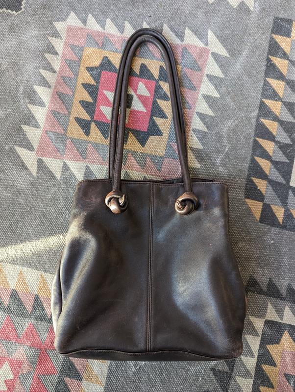 Винтажная сумка Marks & Spencer из невероятно мягкой, приятной на ощупь кожи. Имеет определенные потертости на боковинках и сгибах, которые добавляют ей шарма. Имеет два головных отделения на кнопках и два внутренних кармана на замке. Размеры без ручек - 25 см х 26 см х 11 см Длина с ручками - 53 см