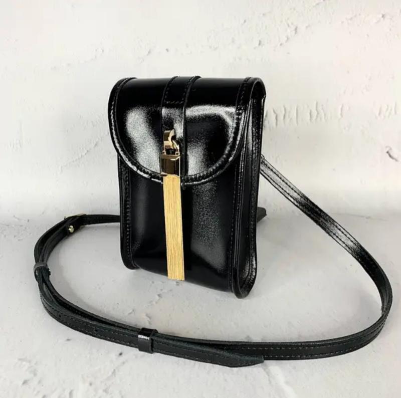 Сумочка жіноча шкіряна, чорна глянець 1688