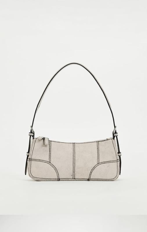 Міні сумка через плече з кракелюрним ефектом. Контрастна деталь верхньої строчки. Регульований ремінь з пряжками. Застібка-блискавка з подвійним язичком. Висота х довжина х ширина 18,3 х 28,5 х 7,6 см. в наявності!