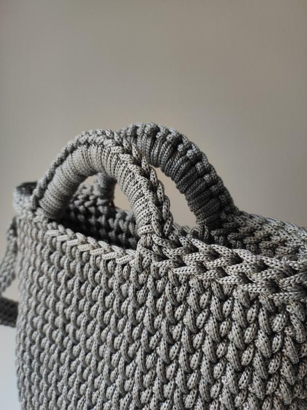 👜 Колір: сільвер 🌿 Матеріал: поліефірний шнур 📏 Розмір: Ширина: 30 см Висота: 22 см + 5 см ручки Ширина дна: 10 см Довжина ремінця: 90 см 💲 Ціна: 1299 грн ✅ В наявності