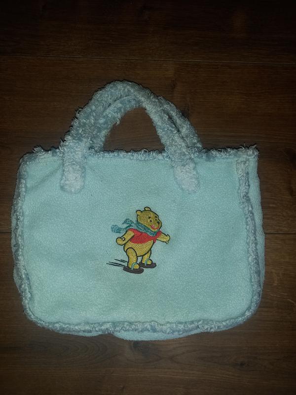Веселая дитья сумка,с мультяшным героям Вини пух.Голобого коляра.Сумка пушистая.С мягкой ткани. Размер.21-16см