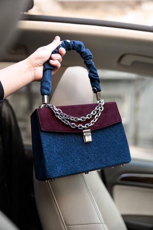 Комбінована сумочка Шкіра + денім Розміри 22,5:16,5:7см В середині тканинна підкладка, має внутрішній карман та ремінець.