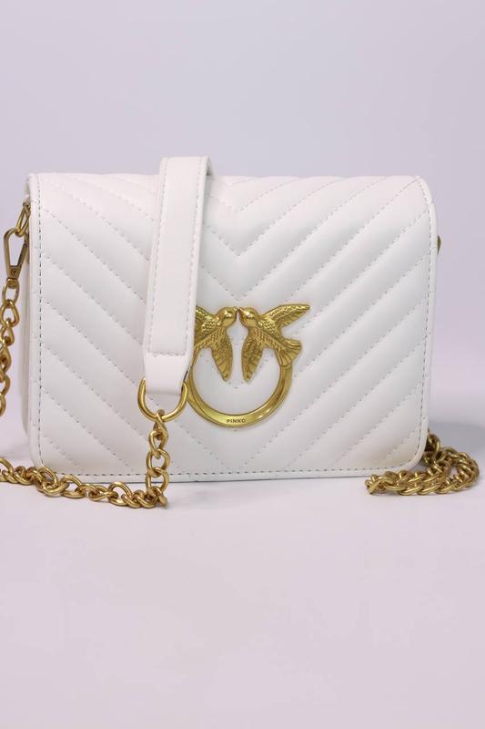 Love Click Classic Quilt white Опис: 💎Розмір: 19х14х10 💎Матеріал: Еко шкіра Сумка виготовлена з якісної стьобаної еко шкіри, має два відділення та посередині кишенька, яка застібається на блискавку. Пакування: брендова коробка, папір, наповнювач, наліпка. Арт: 1803
