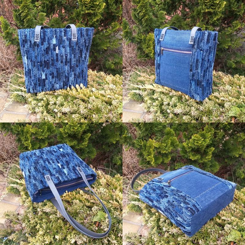 Сумка виконана в техніки джинсель. Має всередині 3 кішені, один з них на блискавці.