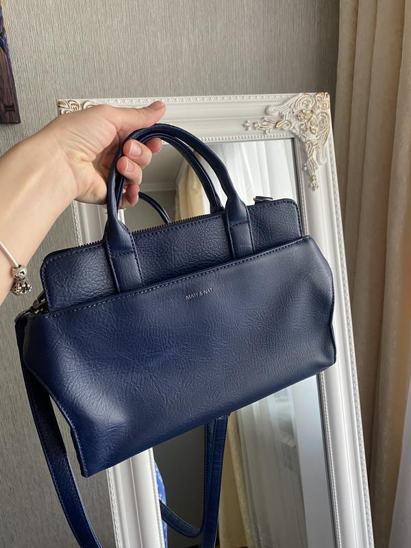 Классная темно-синяя сумка, качественный заменитель, очень вместительная как новая, только немножко спереди есть как более светлая область, почти незаметно