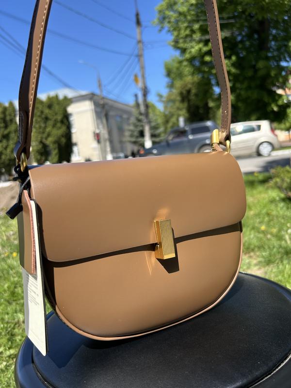 Кожаная сумочка с изящной фурнитурой в мотовом состаренном золоте Имеет два ремешка Размер 15»6»20