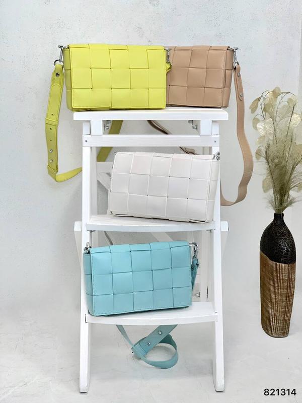 821314 Новинки ❤️🔥 Сумка Боттега плетіння шкіра Ціна 1880 грн Розмір: 24/15 Матеріал: натуральна шкіра (зразок шкіри на бирці ✅) Колір: блакитний; жовтий фурнітура срібло 3 відділи ремінець регулюється шкіра