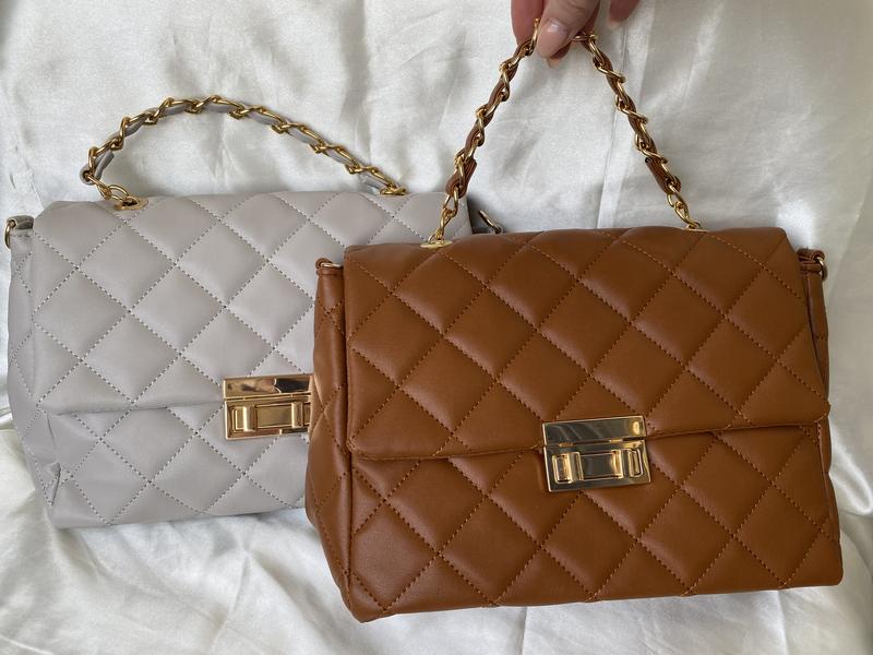 Сумка женская из эко кожи, производитель Турция Размер 25*19 см Имеет два отдельных отделения Из недостатков неосторожные швы внутри (на фото есть), извне сумка без дефектов Цвета коричневая и свет серый