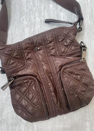 Плащевая коричневая сумка Tommy Hilfiger оригинал Размер 25х24см, Плечевой ремень 129 см регулируется Реальный цвет на 2 фото темный шоколад