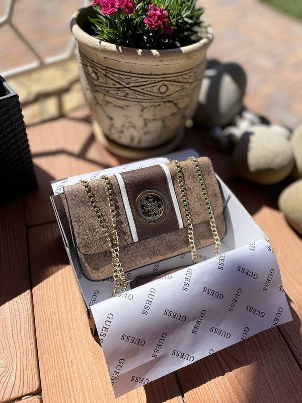 Guess •Розмір: 27/17/6 •ланцюжок •1відділ та карман •Матеріал: еко шкіра •Комплект: коробка •Фурнітура: золото •Ціна: 1990 грн