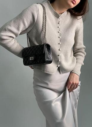 👜 Chanel 2.55 Reissue Double Flap Leather Bag Black/Silver (Арт: 99234) 💵 3490 грн 📐 Размер: 19.5 x 12.5 x 7 см 🧵 Материал: Кожа 🔎 Описание: Сумка выполнена из гладкой кожи с эффектом помятости. Внутри одно отделение, также есть карман на застежке. Подкладка у сумки из гладкой кожи вишневого цвета, есть брендовая маркировка. Закрывается сумка благодаря фирменному замку. Фурнитура металлическая, брендированная. Золотистая цепочка может регулироваться как для ношения в руке, так и через плечо. Комплектуется в брендовой коробке и пыльнике, также в комплекте есть карточка, буклеты и подарочная лента.