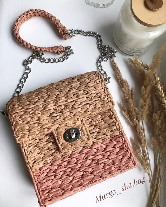 Хорошенькая сумочка-клатч в спокойных пастельных тонах Создана на пластиковой канве и обвязана рафией Имеет квадратную форму с размерами 17х16х5 см Внутри очень красивый цветочный подклад Закрывается на поворотный замок Очень подойдет к любому летнему луку ВЬЮ женские сумочки