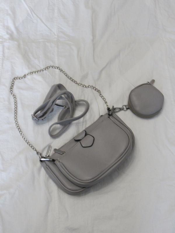 Сумка сіра, можна по різному носити, всі деталі відстібаються