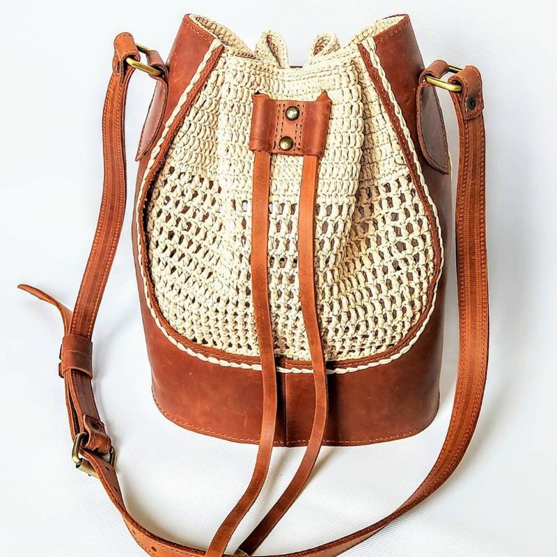 Сумка з рафії в кожаній фурнітурі. Стильна, легка та вмістка