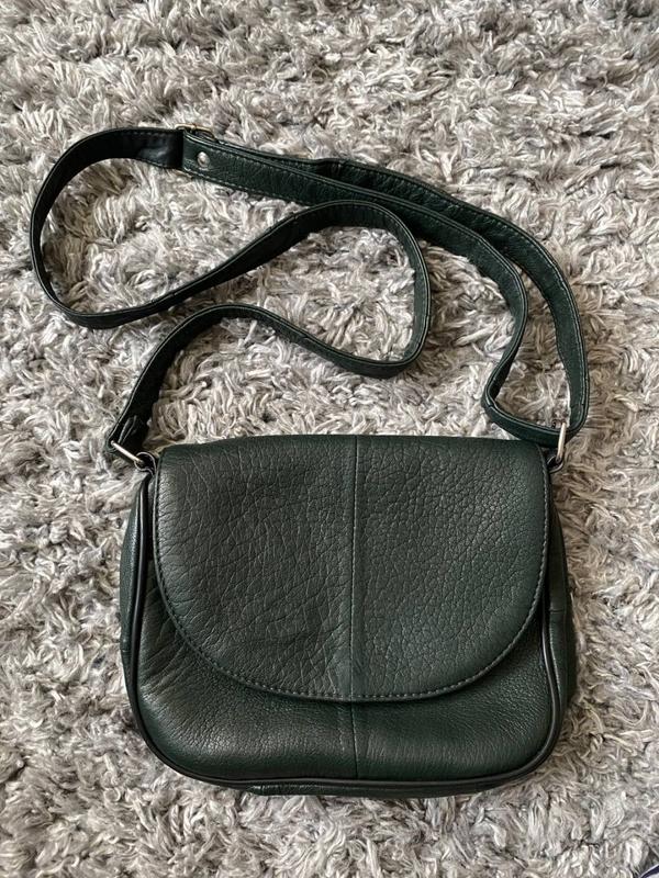 сумочка темно-зеленого цвета. состояние идеальное. эко-кожа. одно большое отделение и есть еще маленькие. возможен торг