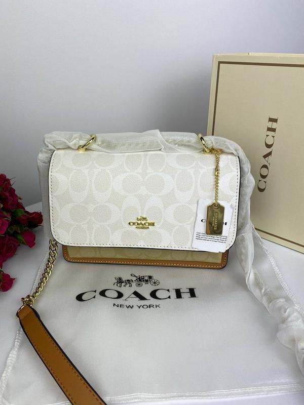 ⭐️PREMIUM ⭐️ Coach Mini Milk/Beige ▫️Матеріал: шкіра ▫️Розмір: 21,5x16x8 см ▫️Чотири відділення ▫️Всередині лого ▫️Текстильна підкладка ▫️Металева брендована фурнітура ▫️Комплектується в брендовану коробку на магнітах, пильовик, документи
