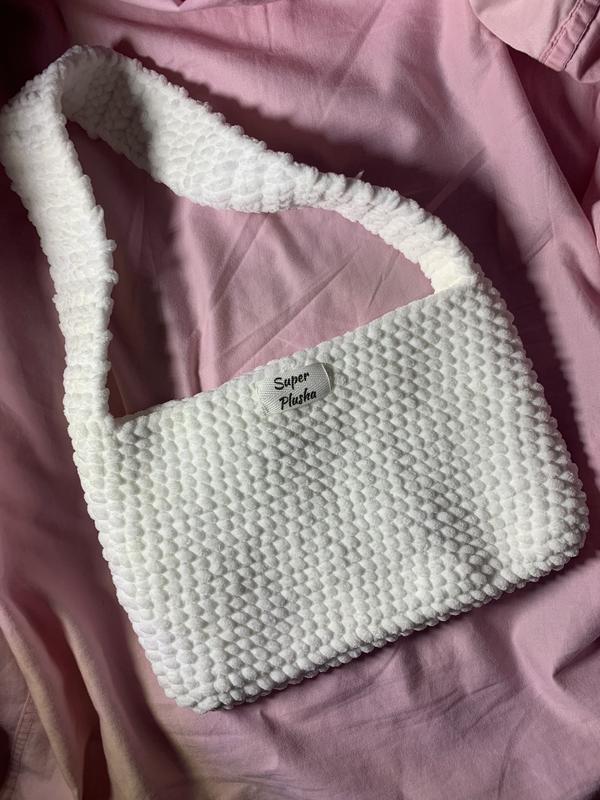 Плюшева сумка 100% полиэстер В белоснежном цвете Большая палитра цветов Изготовление от 2-5 дней Создана под заказ 25см длина 17см высота 20см ручка