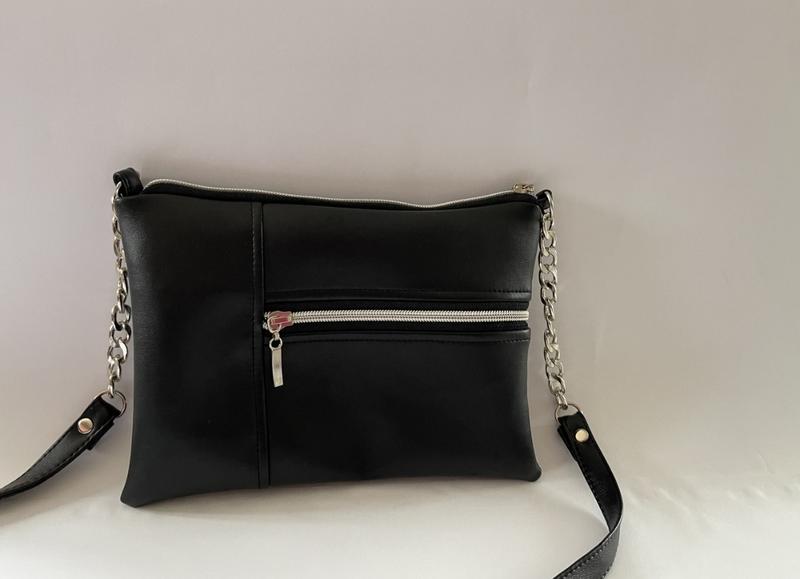 Модна сумка на довгому ремінці в комбінації з ланцюгом . Довжина ручки - 120 см. Розмір 23х17 см. Матеріал - штучна шкіра. Застібка - срібляста блискавка. Підклад , внутрішня кишеня. Фурнітура - срібло. Країна виробник - Україна .