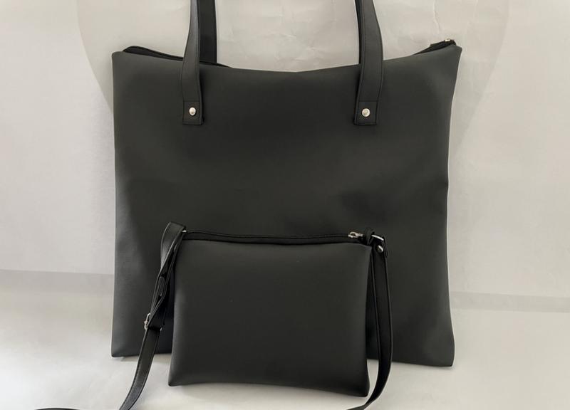 Комплект жіночих сумок - велика сумка- шопер, та сумочка через плече на довгому регульвпнному ремінці. Розмір сумка - шопер 43х39 см дно 6 см, маленька 25х18 см дно 3 см, довжина ремінця 130 см. Матеріал - штучна шкіра. Застібка - блискавка , підклад , внутрішня кишеня. Країна виробник - Україна.