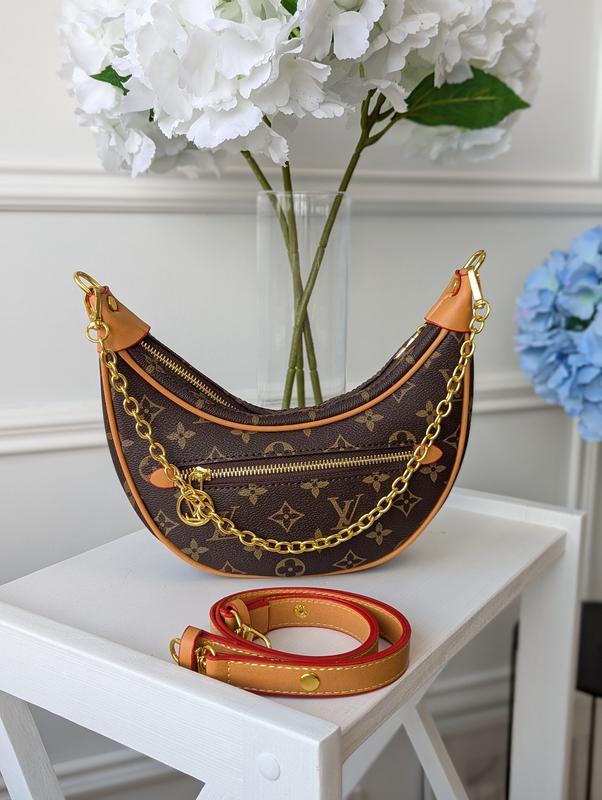 Ідеальна якість та стиль в сумочці Looр виконана у формі півмісяця. Ланцюжок та ремінь зі шкіри дозволяють носити компактний аксесуар на плечі або в стилі крос-боді. Блискавку зовнішньої кишені прикрашає бігунок LV Circle. Кольори: білий коричневий+чорний коричневий+беж. Матеріал: Еко-шкіра Monogram Сумочка з підкладкою та нашитим логотипом. Розмір 23 x 13 x 6 см У комплекті довгий ремінь, максимальна довжина якого 50см. Цепочка 25см