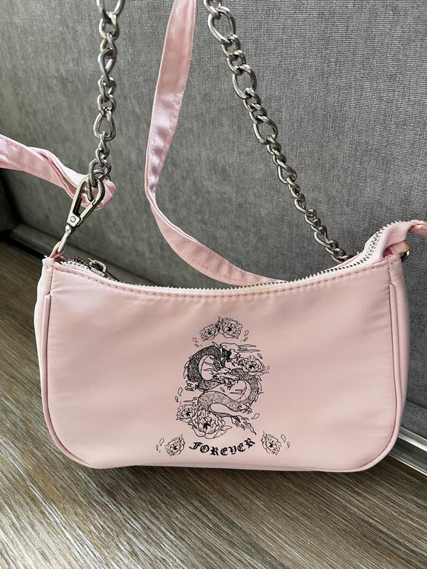 Атласна сумка через плече, рожевого кольору. З ланцюжком.