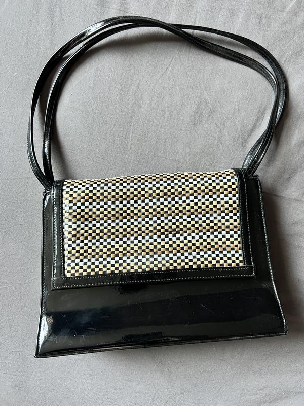 Сумка лакированная с вышитой вставкой. Хорошо держит форму