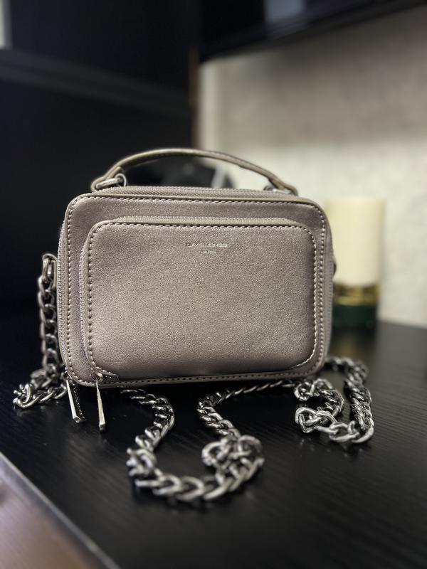 Акуратна сумочка на два відділи та з маленьким карманом Фурнітура вся металева та в ідеальному стані Матеріал: якісний шкірзам, бронзово -срібного кольору Розмір: висота 14 см, ширина 20 см, дно 7,5 см