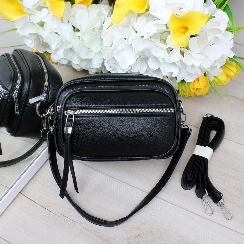 Код Д329 Розмір: 22,5 см ширина по дну, 15,5 см висота, 11 см дно. Плечовий ремень регулюється до 135 см. Довжина ручки 50 см Матеріал: еко шкіра люкс якості Одне відділення. В середині відкрита кишеня та кишеня на блискавці. Спереду дві кишені. З тильної сторони кишеня на блискавці.