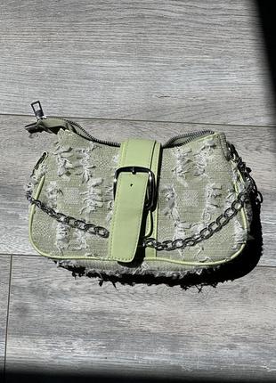 Міні-сумочка в стилі Y2K 2000х з металічним аксесуаром та подовженим ремінцем. Всередині 2 відділення.