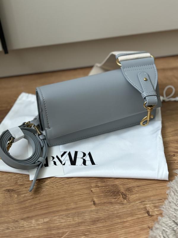 Думка Зара в сіро-голубому кольорі Дуже якісна Два ремінця: широкий текстильний і вузенький довгий Розмір: 11*21,5