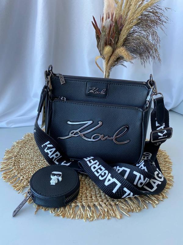 Karl Lagerfeld 3 in 1 ▫️Матеріал: еко-шкіра ▫️Розмір: 23x15x6 cм ▫️Два відділення ▫️Пакування: брендована коробка, пакувальний папір, наліпка