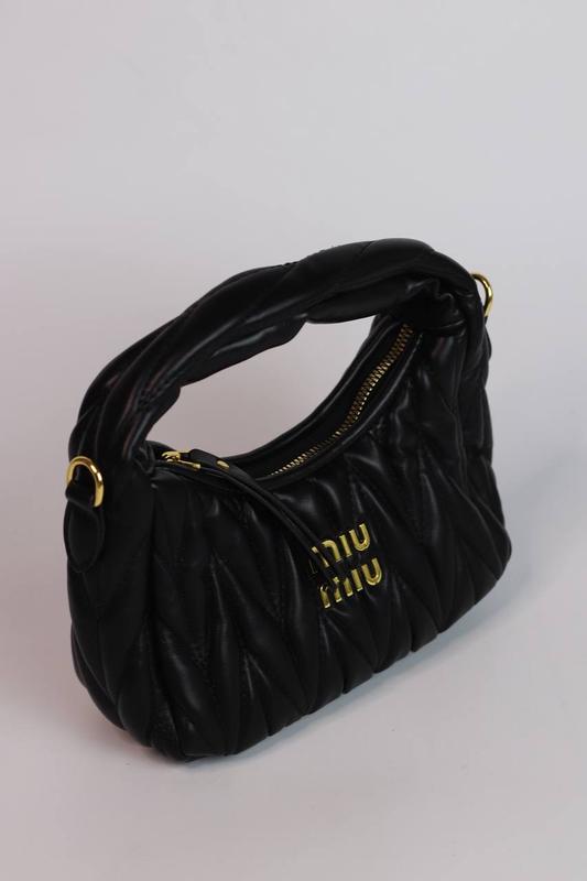 Брендова сумка Miu Miu Wander Matelassé Nappa hobo black Опис: Ціна: 1950 грн Розмір: 22х14х9 Матеріал: Еко шкіра Сумка виконана з якісної еко шкіри. У сумці одне відділення, яке застібається на блискавку. В середині є бокова відкрита кишенька. Підкладка текстильна. В комплекті є плечовий ремінь на карабінах з еко шкіри, який регулюється по довжині. Фурнітура золотистого кольору. Пакування: паперова коробка, папір, наповнювач, наліпка. _____ 3301