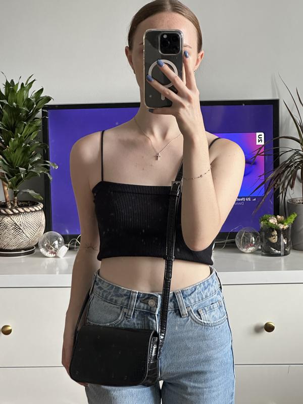Маленька сумка Reserved чорного кольору довжина регулюється в середині є маленька кишенька на замок