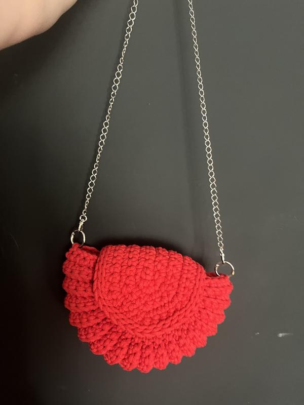 Сумка ручной работы крючком, модель Орео красная натура хлопок.