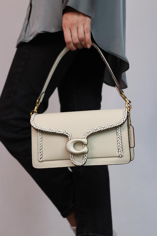 Tabby Shoulder ivory 📌Арт: 1502Р 🔗 Розмір: 26х14х7 🔗 Матеріал: Еко шкіра Жіноча сумка виконана з преміальної еко шкіри. У сумці чотири відділення, одне з яких застібається за блискавку, а також є бокова відкрита кишенька. Підкладка текстильна. На звороті відкрита кишенька. В комплекті два змінні ремінці з еко шкіри, один короткий для носки в руці, другий - довгий, оздоблений обробкою ручної плетіння, який регулюється по довжині та можна носити через плече. Фурнітура брендована золотистого кольору. Пакування: брендова коробка, пильовик, документи.