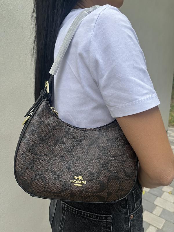 Сумка в коричневому кольорі стиль Coach В комплекті: пильник+довгий ремінець Люкс, розмір 23/15/8 см Є, ще в рожевому, блакитному та бежевому кольорі