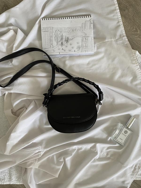Сумка через плече та з маленькою ручкою, чорна. Мініатюрна, не велика. Ніжно виглядає в образі. Відстібаються обидві ручки