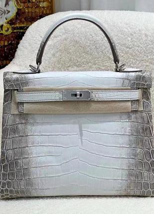 Сумка в стилі Hermes з усіма лого розмір 25 натуральна шкіра крокодила матова