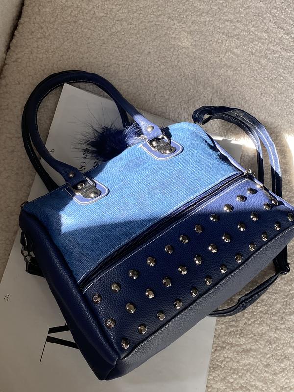 В наявності Арт 00030 Сумка прямокутної форми, дві короткі ручки, довгий ремінь пристібається. Брелок помпон в комплекті. Всередині без підкладки . Розмір 23»30»11