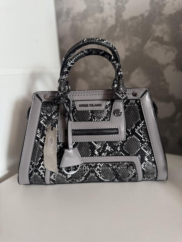 Сумка River Island, трендовий зміїний принт, є довгий ремінець. Розмір: 30,5х20х8