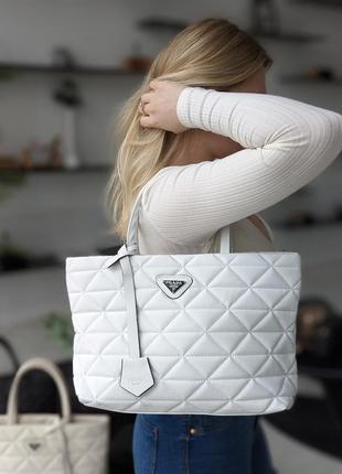 Большая женская сумочка Prada шоппер в нейлоне код черный 20285-1 белый 20285-2 молочный 20285-3 Размер: 40*24*12см Одно отделение на блузке, дополнительный карман в середине. Есть ремешок - 145см. Фирменный логотип на сумочке с прочной фурнитурой. Материал: нейлон