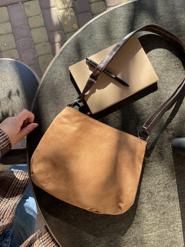 Трендова сумочка у штучній замші. Новенька , носилась декілька разів. Зручна, на замочку. Пасок регулюється)