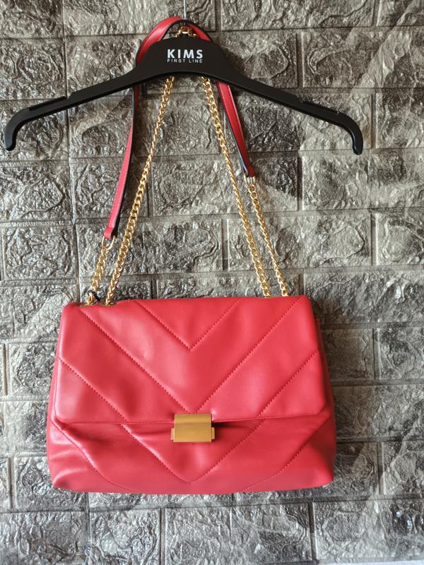 Новая сумка, красная с золотой фурнитурой. Вместительная, мягкая, застёжка-магнит, ручка двойная, длина регулируется. Крупная цепь. Одно основное отделение и небольшое на молнии. Подкладочная ткань в бежевом цвете. Замеры - ширина по донышку 10, - высота по середине 24, - ширина по середине 33, - полная длина ручки 125. Отправка новой почтой и укрпочтой. Наложенного платежа нет.