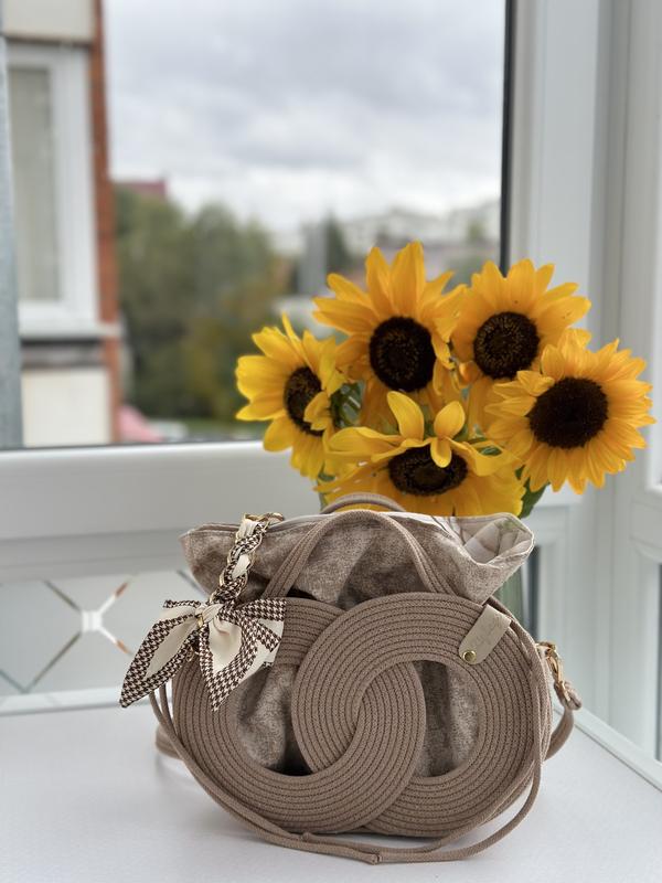 Эксклюзивная дизайнерская сумка от украинского бренда zigbags, которая подчеркнет вашу индивидуальность. Изготовлена из высококачественного хлопкового шнура с акцентом на эстетику и комфорт, она сочетает в себе минималистичный дизайн и сложные элементы в виде плетеных кругов. Эта модель украшена стильным платком с элегантным принтом, придающим сумке особый шик и неповторимый шарм. А также дополнена распашным мешочком внутри для практического использования. Она является идеальным вариантом как для повседневного использования, так и для более особых событий. Особенности: - Эксклюзивный дизайн: уникальное плетение в виде двух переплетенных кругов, что придает современный вид. - Материалы: изготовлена из экологически чистых материалов, устойчивых к износу. - Аксессуары: декоративный платок добавляет женственности и изысканности, но в то же время ее можно легко снять. - Практичность: вместительная, но при этом компактная – идеальна для ношения повседневных вещей. - Удобство: легкая и комфортная в носке, благодаря регулируемому ремешку можно носить как на плече, так и через плечо, или в руке. - Стиль: подходит как для ежедневных образов, так и для особых событий, благодаря своему универсальному дизайну и цвету. Эта сумка станет отличным дополнением к вашему гардеробу, подчеркнув ваш изысканный вкус и чувство стиля. Данная модель доступна на заказ в более чем 30 цветах из палитры. Цена 2300 грн. Доставка по Украине в подарок.