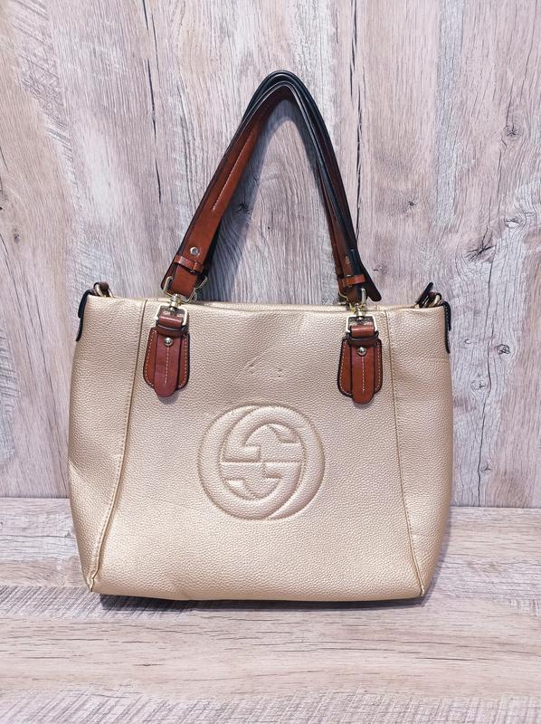 Жіноча сумка. Написано GUCCI, я не знаю оригінал чи ні, шкіра чи ні, не розуміюся на цьому. Взагалі стан не поганий, є потертості на усіх чотирьох кутах біля дна сумки. Відсутня якась емблема з переду. Підкладка у дуже гарному стані, майже ідеальна. Змійка робоча, Ручки в ідеалі. Колір Золото Розмір 29 на 32 см Дно 31 на 13 см