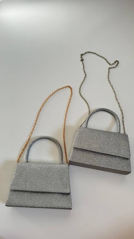 Знову у наявності є с срібними ремінцем а також с золотим Сумочка Код 610 Колір : срібний 🖤 Матеріал: текстиль с блестками Висота без ручки 14 см довжина 20 см