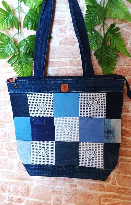 Красива сумка з джинсової тканини! Розмір оптимальний 40 см на 35 см,дно 11 см. Ззаду 1 кишеня і 2 накладні кишені всередині. Закривається на блискавку. Ручки — 60 см, закріплені стропою.